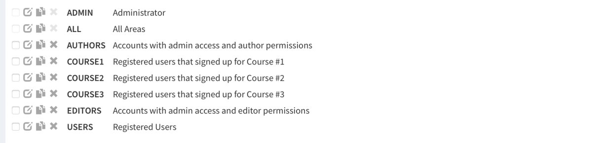 The first thing you can setup is the Usergroups list. The following image shows you all the USERGROUPS we have setup for this demo file.